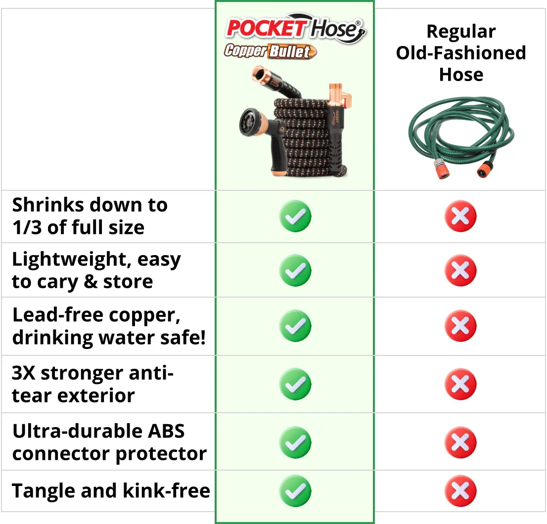 These are the reasons why Pocket Hose Copper Bullet is the premier copper bullet hose solution you’ll find: